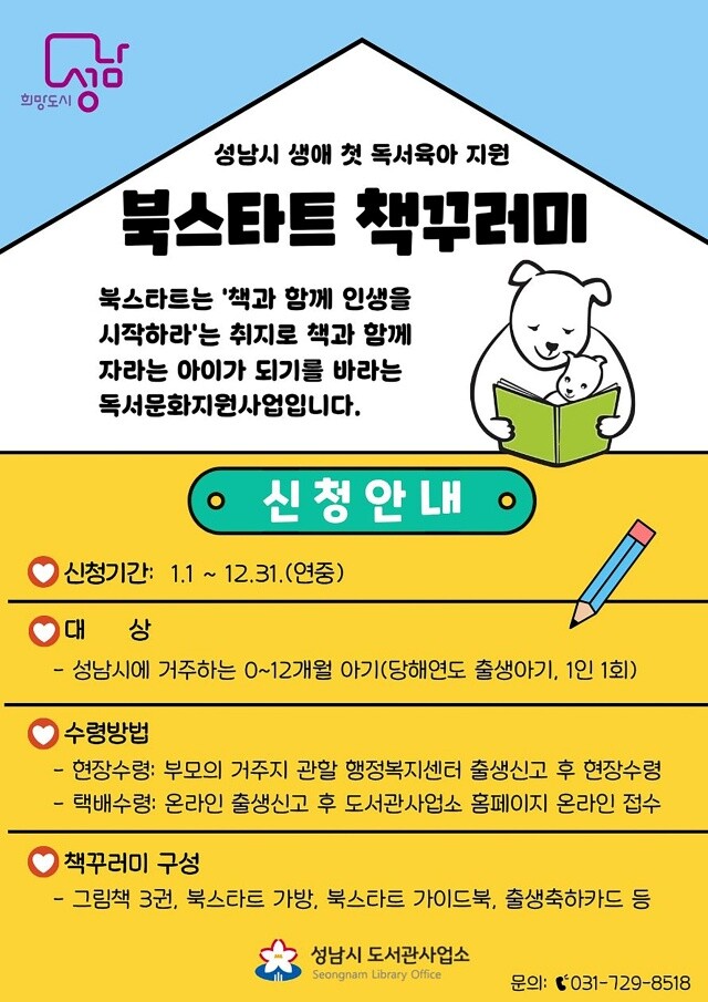 | < '북스타트 책 꾸러미 지원사업' 홍보 포스터. 제공 : 성남시 > |
